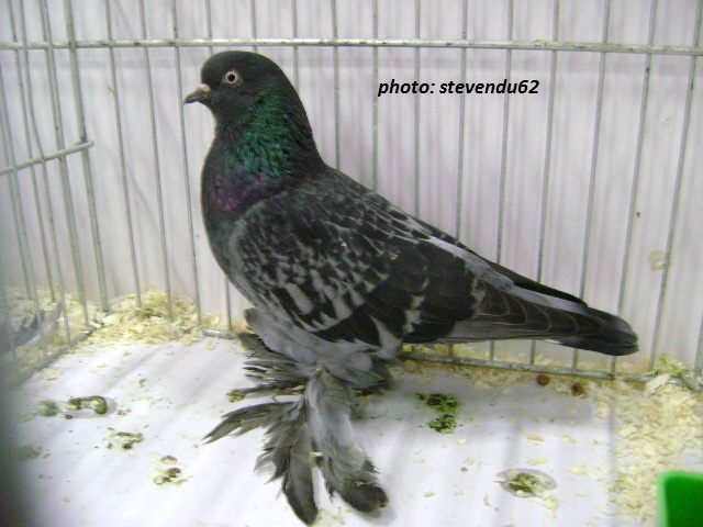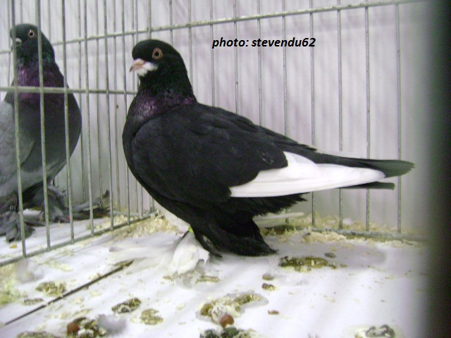| noir vol blanc et barbe blanche il est superbe ce pigeon un membre du club francais a des sujets de vol c'est pour moi encore mieux